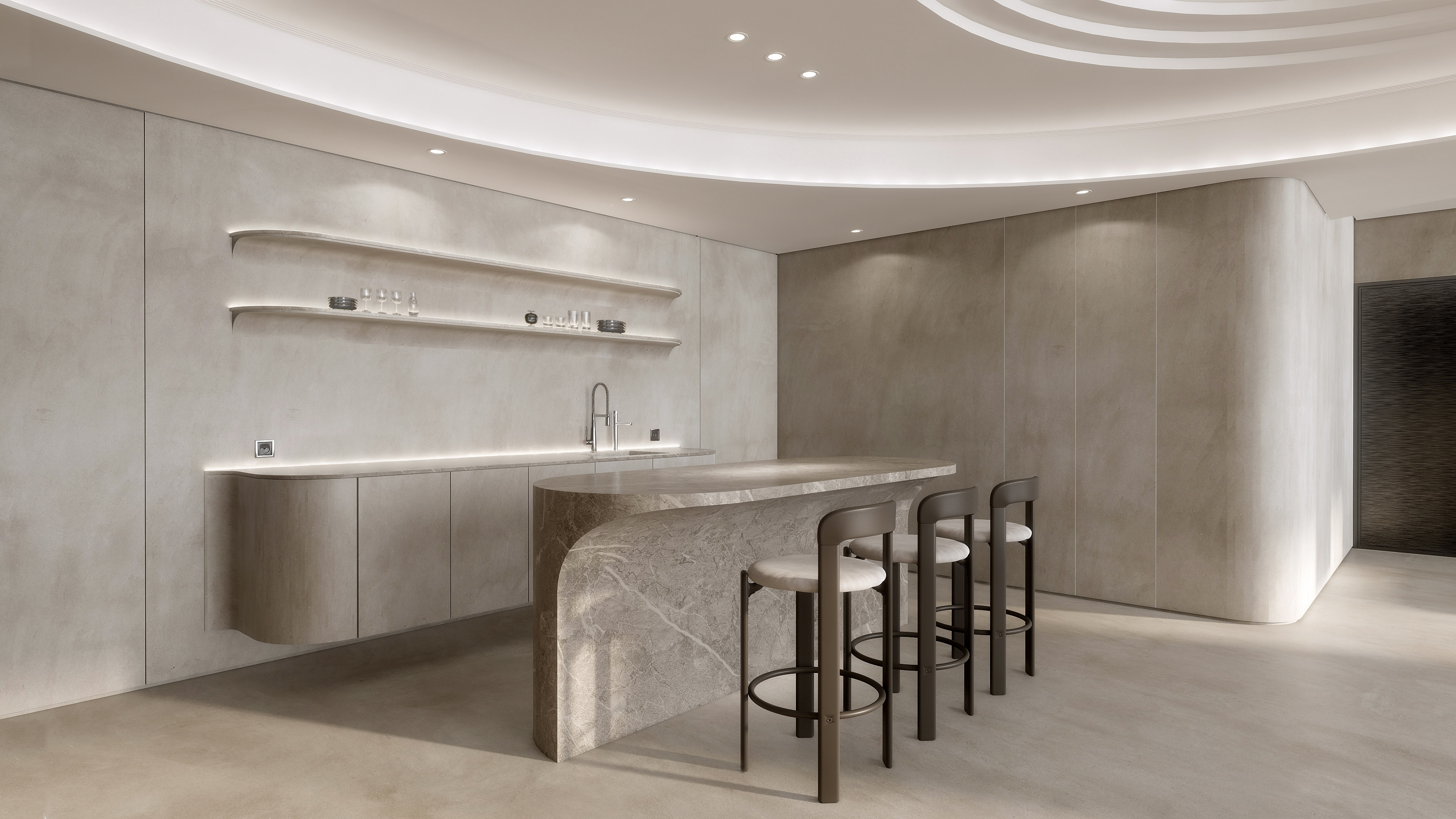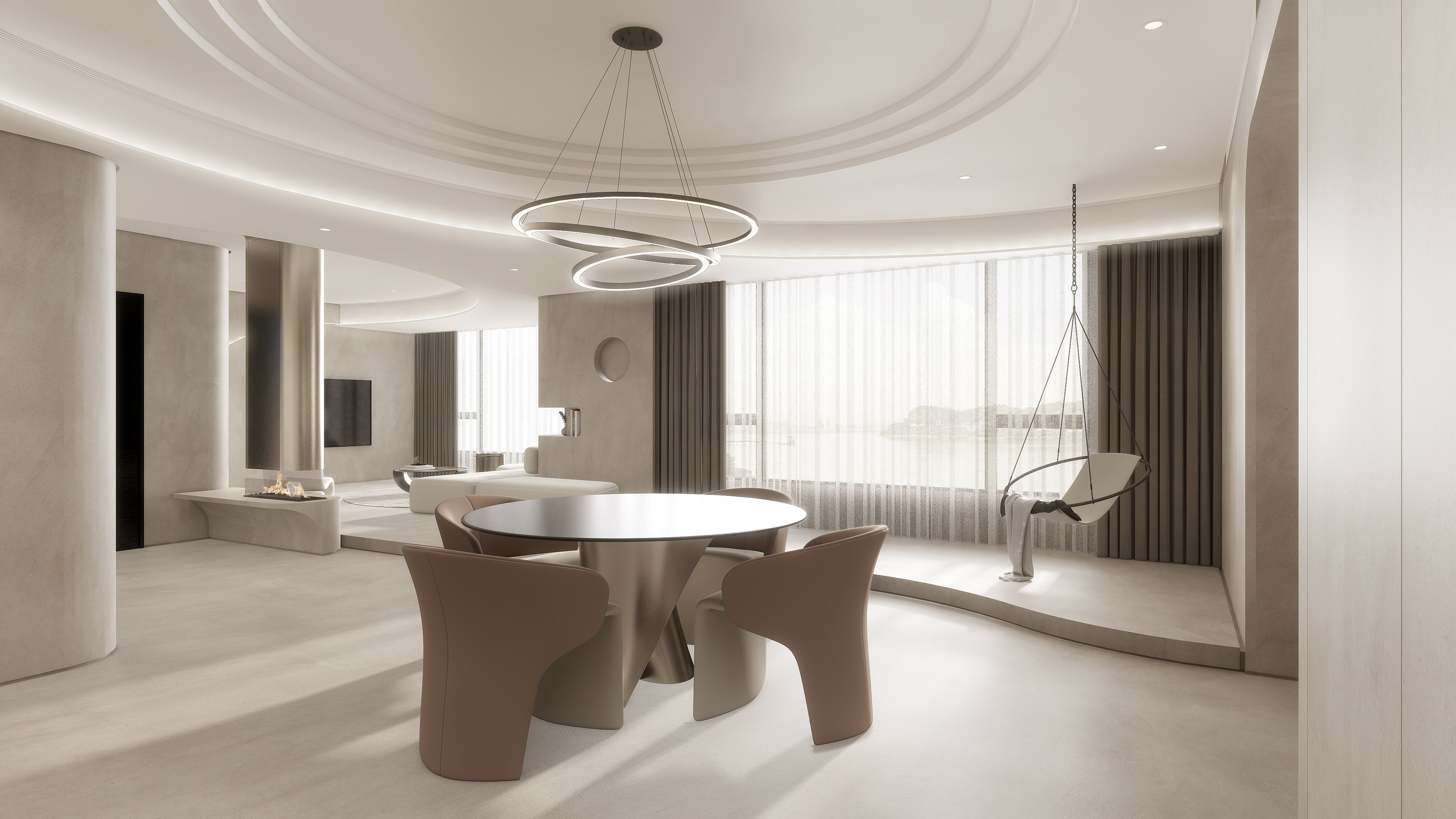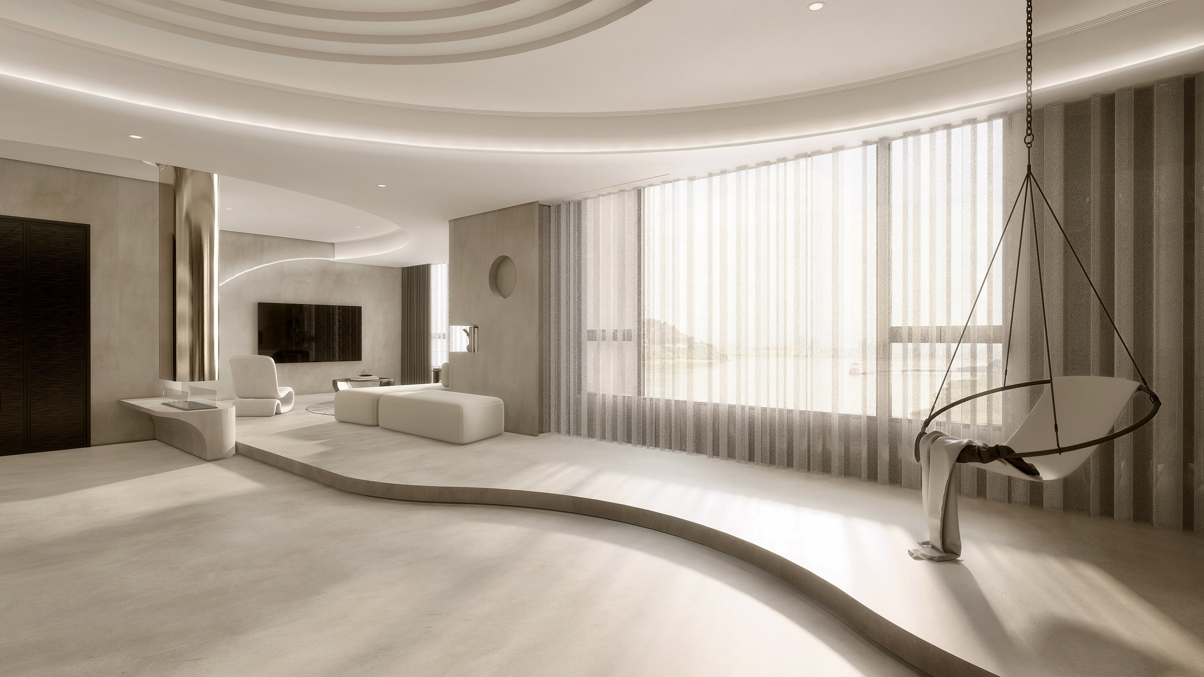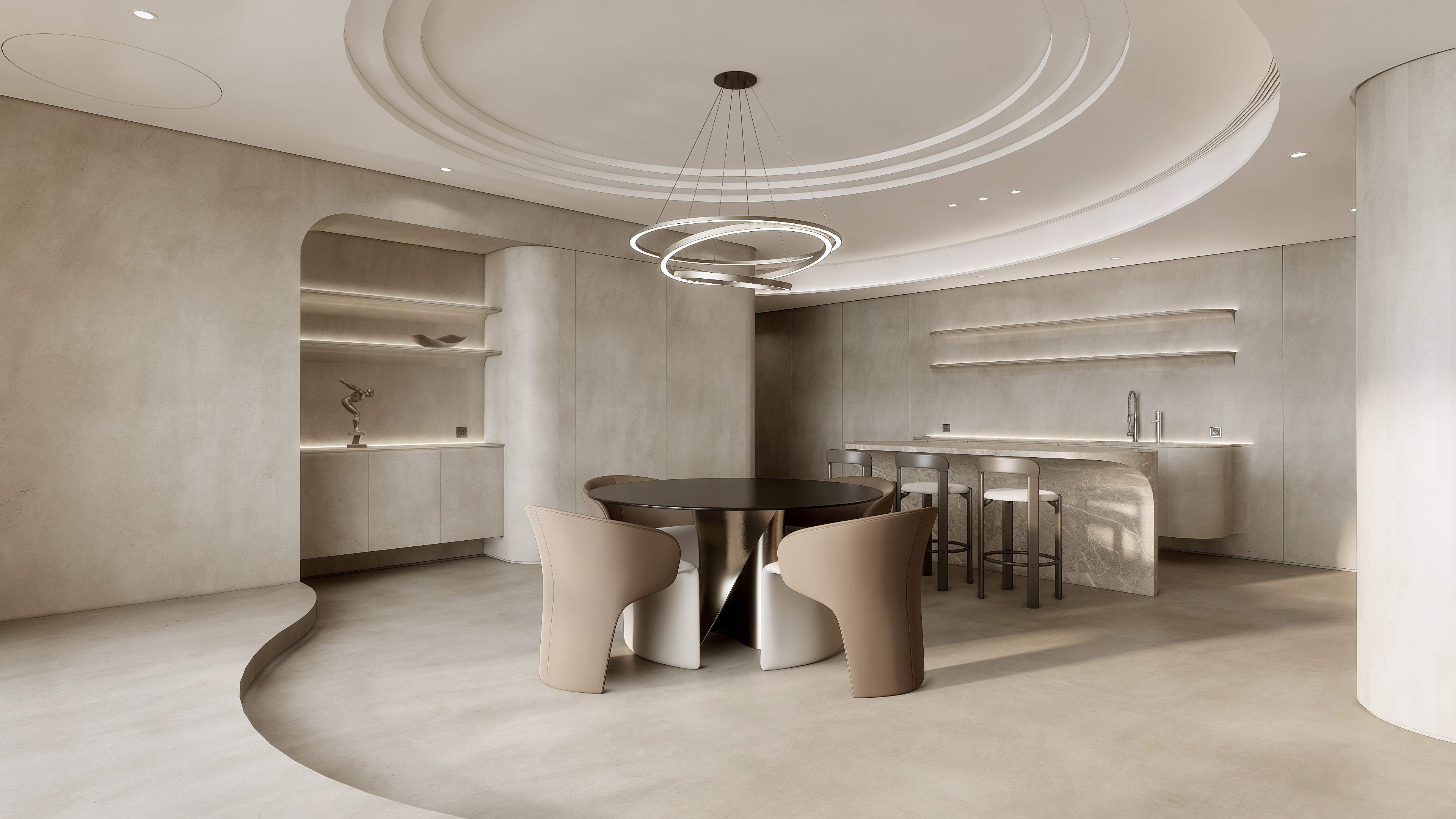 具有如微砂状、流动感和金银光泽,置于其中,有流沙深埋的宁静,金色的阳光如同美酒般轻洒下来,饱吮阳光的温暖。“治愈系”的环境,让人放松、舒缓、温馨。